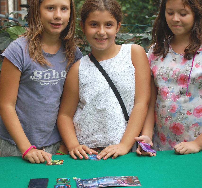 Il tratto distintivo del gioco sono, infatti, 4 bollini adesivi per giocatore/colore – 3 generici e uno di “fine missione” – realizzati con un’innovativa tecnologia di tipo “attacca e stacca”.