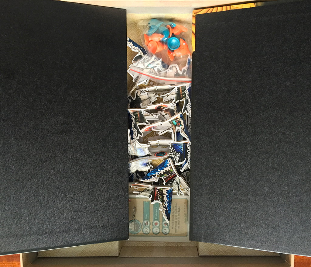 Prima di iniziare la nostra recensione, vogliamo tranquillizzarvi: non lasciatevi spaventare dall’indicazione presente sulla confezione, che descrive il gioco come bilingue (inglese e francese); in realtà, l’unico elemento linguisticamente dipendente è il mazzetto con le carte che riassumono le caratteristiche di navi e comandanti, ma ai fini del gioco non sono affatto indispensabili (anzi, se ne può fare tranquillamente a meno!), mentre la app ufficiale (disponibile sia per iOS che per Android) adesso è stata interamente tradotta in italiano (e in tedesco), rendendolo perfettamente fruibile anche da chi non conosce le lingue.