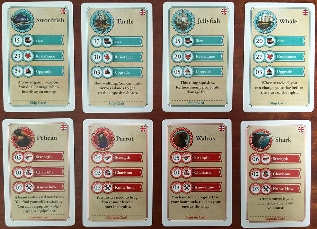 Trattandosi di un gioco relativamente semplice, è stato svolto un buon lavoro di bilanciamento, anche perché avendo a disposizione solo 3 caratteristiche per i capitani e altre 3 per le navi è stato sufficiente usare la vecchia – ma sempre efficace – regola, che recita: “chi eccelle in un aspetto, sarà scarso in un altro”. Questo comporta anche una certa varietà strategica, perché chi impersonerà Capitan Squalo dovrà puntare molto sulle battaglie (oppure evitarle del tutto), mentre chi ha Capitan Pappagallo non potrà mai far affidamento sulla segretezza delle proprie azioni, né bluffare più di tanto.