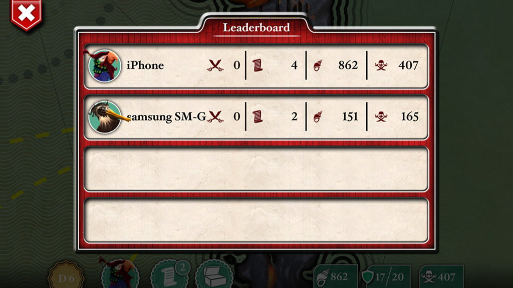 La app, inoltre, separa in modo molto intelligente e non meno sfizioso il comparto privato da quello pubblico riguardante ciascun giocatore: nel momento in cui lo smartphone è adagiato sulla plancia, sullo schermo compare soltanto la mappa e poco altro; quando, invece, questo viene impugnato – sfruttando il solito accelerometro – fornisce tutta una serie di informazioni dettagliate, riguardanti la nave, il suo equipaggiamento e i diversi punteggi maturati dal giocatore. In una versione analogica del gioco, sarebbe servito un ampio schermo di protezione e, comunque, sarebbe stato più difficile tenere nascosti questi dati agli occhi degli avversari più infidi.