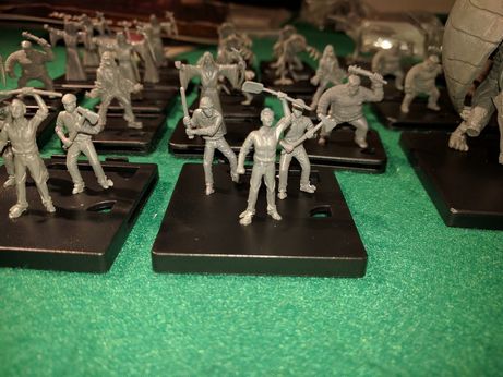 Una annotazione personale ma condivisa da molti: il gioco girerebbe molto bene anche senza miniature dei mostri. A prescindere dal discorso delle basette, la scatola contiene per ogni mostro anche un segnalino in cartone (in perfetto stile Arkham Horror) che si può opzionalmente inserire nella basetta… ma così facendo questa ne nasconde la bellissima grafica, che per molti aspetti è preferibile alla miniatura non dipinta. Ho quindi deciso di mettere da parte le miniature dei mostri e giocare coi segnalini di cartone, ma solo finché non troverò il tempo di dipingerle.