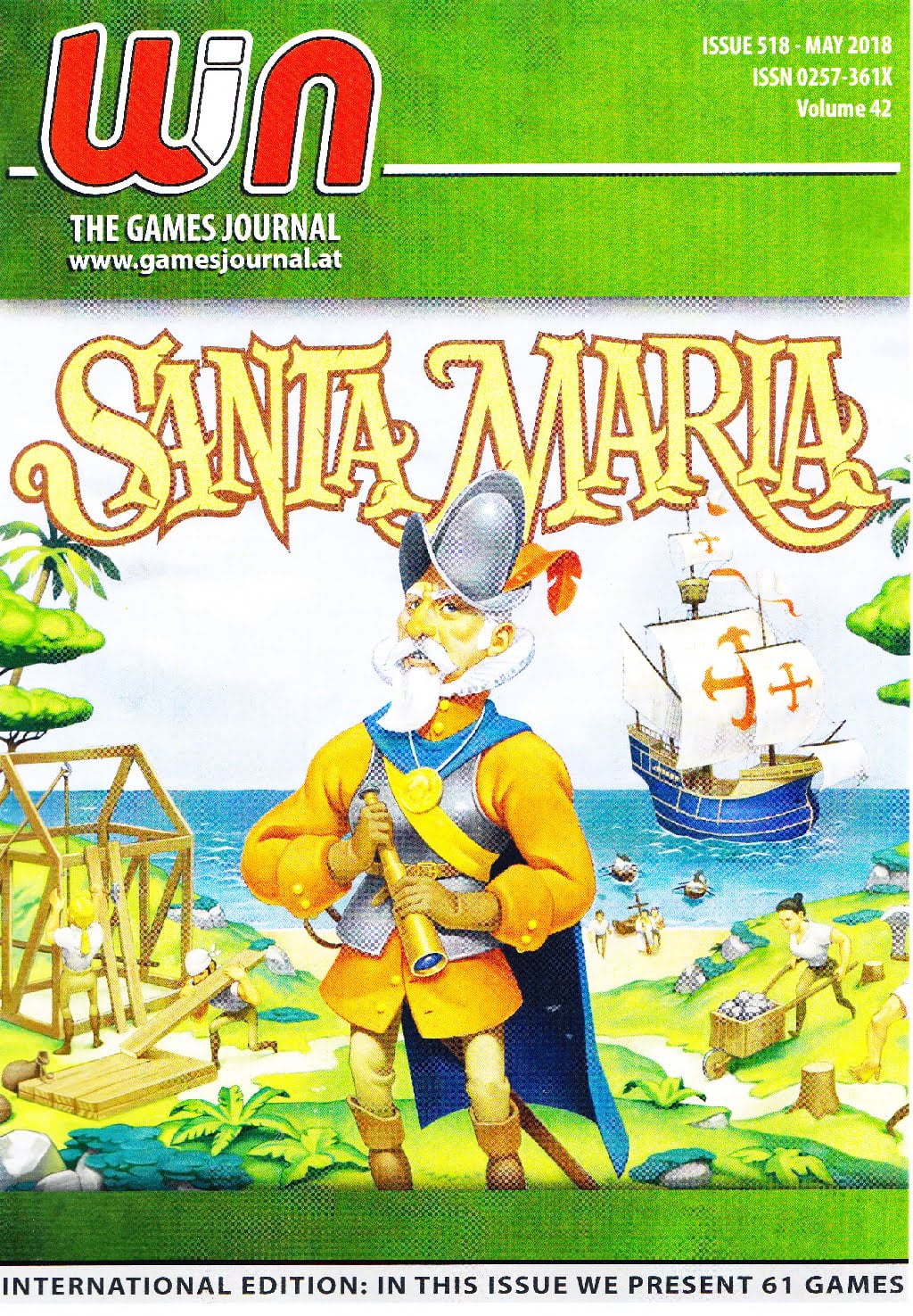 Il numero 518 contiene le recensioni di 61 giochi, con articoli dettagliati su Project Gaia, Majesty: For the Realm, Noria, Santa Maria ed articoli più brevi, fra i quali segnaliamo: 13 Days, 18CZ, Carthago, Dream Home, Cry Havoc, Deckscape: The Fate of London, The Coloniosts: Ante Portas, Drop it, Immortals, Lost Cities: The Boardgame, Snowdonia: Siege of Peterburg & The Channel Tunnel, Yamatai, ecc. Questo numero della rivista è disponibile sul sito del Museo Austriaco del gioco e si può scaricare gratuitamente al seguente indirizzo: http://www.spielemuseum.at/gamesjournal/win-the-games-journal-517-apr-2018/