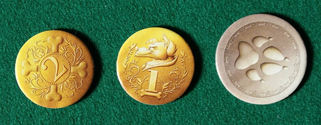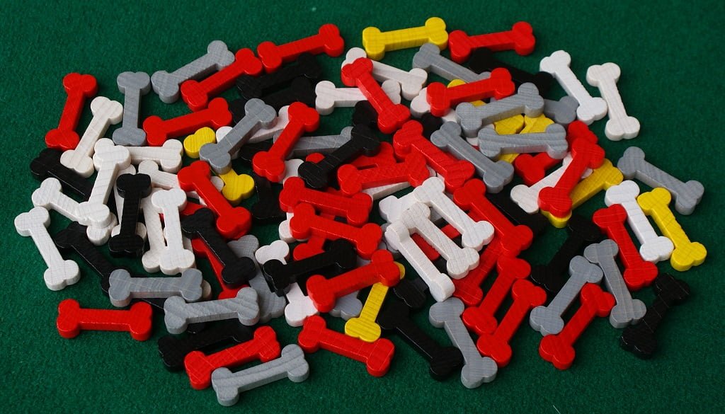 - il “Leader” prende il gettone del primo giocatore (per il prossimo turno) e pescherà poi due ossi dal sacchetto.