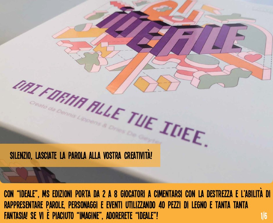 Con IDEALE, MS Edizioni porta da 2 a 8 giocatori a cimentarsi con la destrezza e l’abilità di rappresentare parole, personaggi e eventi utilizzando 40 pezzi di legno e tanta tanta fantasia! Se vi è piaciuto “Imagine”, adorerete IDEALE!