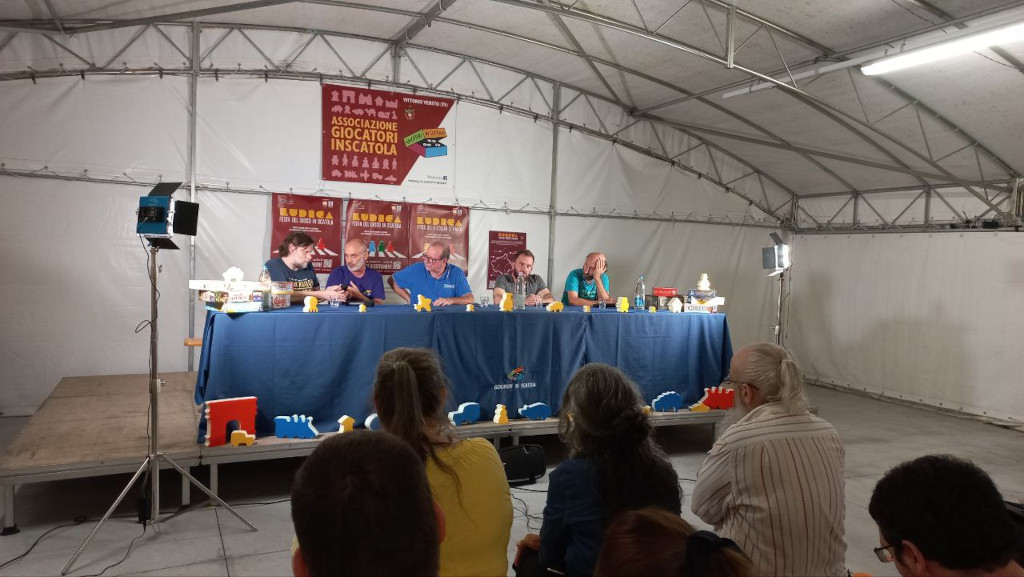 Nella serata di Sabato ha avuto luogo un dialogo tra gli autori e con gli autori sul tema dell’evoluzione del gioco da tavolo dagli anni 80 ad oggi. In particolare, questo arco temporale è stato analizzato dal punto di vista dei designer presenti: dalla battaglia di Randolph per il nome sulle scatole dei giochi al premio Archimede e IDEAG, passando per la sempre discussa piattaforma Kickstarter. Non sono mancate infine alcune curiosità e “dietro le quinte” davvero interessanti. Se voleste recuperare il video, potete trovarlo a questo link.