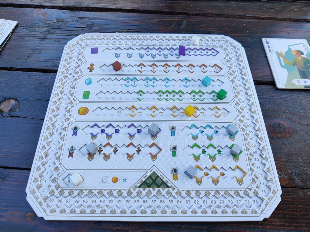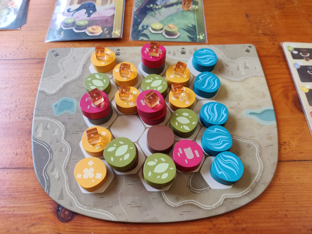 Confermo quello che di buono avevano scritto gli altri redattori(potete trovare le recensioni qui e qui). Il primo presenta una buona implementazione della meccanica “I cut, you choose” e tiene splendidamente al tavolo un alto numero di giocatori mantenendo breve la partita. Il secondo rientra nel filone degli astratti dalla ottima componentistica come Azul e Cascadia, inserisce la costruzione verticale e il draft delle carte e richiede ragionamenti leggermente più complessi rispetto ai predecessori: cercare di ottenere il massimo dalla combinazione di biomi e carte, non è affatto semplice.