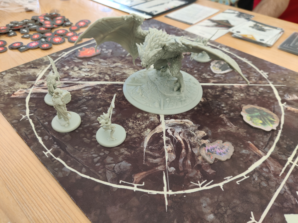 Il big game tutto italiano non delude le elevate aspettative: parliamo di un boss battler cooperativo in cui nell’arco di 10 round bisogna infliggere 10 ferite al mostro determinato dallo scenario. La particolarità è data dal fatto che il mostro non abbia un vero e proprio turno, ma egli reagisce alle azioni dei giocatori o al loro posizionamento. Primal è un titolo fortemente card-driven, ed ogni giocatore utilizza la propria arma in maniera totalmente diversa rispetto agli altri. Molto interessante il fatto che il mostro muti le proprie statistiche e il comportamento (anche in maniera drastica) man mano che i suoi punti vita si riducono. Al tavolo abbiamo particolarmente apprezzato, oltre al colpo d’occhio, il ventaglio di strategie disponibili e le combo che ne derivano, soprattutto se improntate alla stretta collaborazione tra i personaggi. Qualche problemino di ergonomia come l’organizzazione del testo sulle carte e la miriade di token molto piccoli non oscurano un titolo che potrebbe diventare uno dei punti di riferimento della categoria.