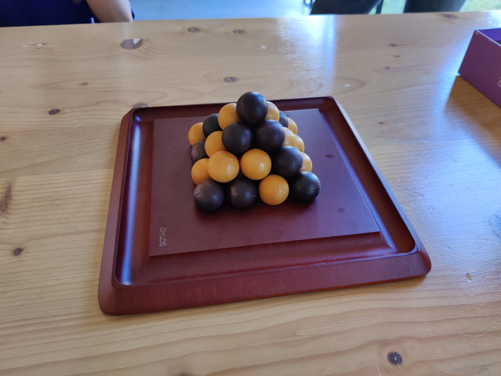 Nella zona astratti da due giocatori ho provato questo tipo della linea Gigamic che mancava al mio “curriculum”, ma di cui avevo sentito parlare bene. Ogni giocatore ha a disposizione un certo numero di biglie del proprio colore e durante il turno si piazza o si fa scalare verso l’altro una biglia con il fine di bloccare quelle sottostante e di essere il giocatore che completa la piramide. Due regole in croce, ottimi materiali e tanta varietà sono gli ingredienti che caratterizzano da molti anni questa tipologia di titoli.